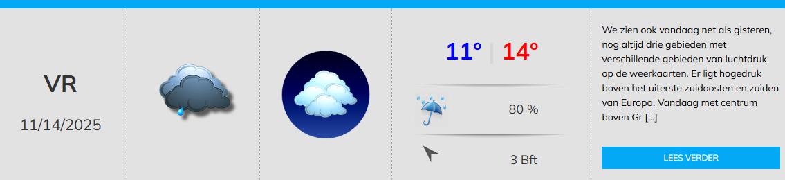 weerkaartje_vandaag Geert Naessens2025-11-14T06:57:26+01:0014 november 2025| Deel dit verhaal, kies je platform! FacebookTwitterLinkedInWhatsAppTumblrPinterestE-mail